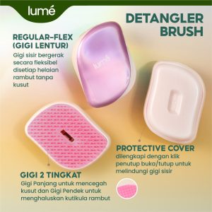 Dapat digunakan pada rambut basah ataupun kering Mudah dibawa kemana saja, LUME Detangler Brush juga dilengkapi dengan penutup click on/off yang dapat dilepas untuk melindungi gigi sisir dari kotoran.